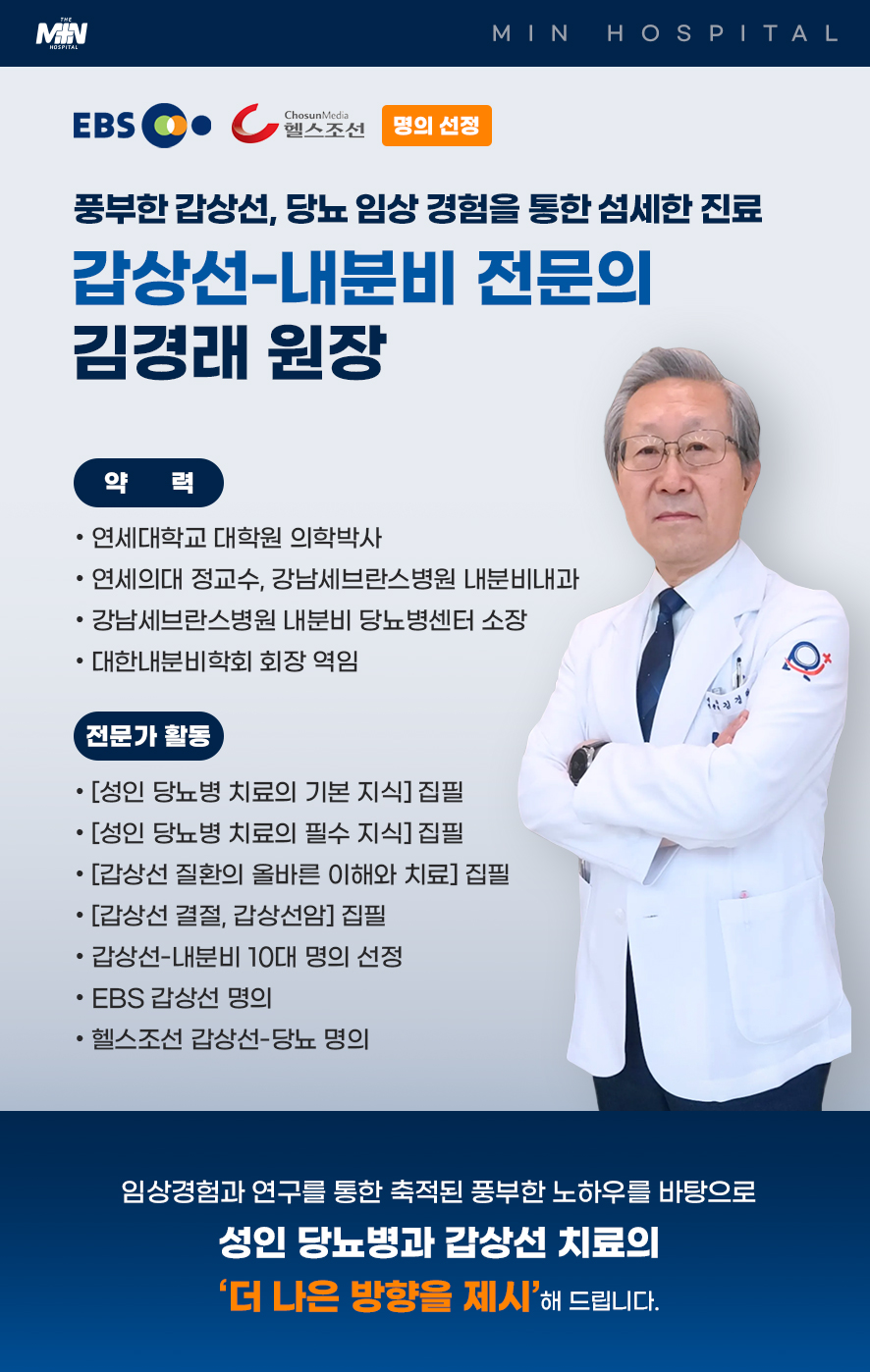 < 호르몬 명의 김경래 원장의 명쾌한 의료 정보 칼럼 > 당뇨병 치료제의 종류와 올바른 선택 당뇨병 약을 꼭 복용해야 하는지를 궁금해하는 환자들이 많다. 생활습관만으로 혈당이 조절되는 경우도 있지만, 대부분의 환자는 시간이 지나면서 혈당이 다시 상승하고 약물 치료가 필요해지는 시점이 찾아온다. 당뇨병은 노화와 함께 진행되는 질환이므로 적절한 시기에 약을 사용하지 않으면 합병증 위험이 높아진다. 약을 늦추는 것이 건강에 이롭다고 생각할 수 있으나, 혈당이 조절되지 않는 기간이 길어질수록 심장, 신장, 눈, 신경 등 장기에 손상이 누적된다. 따라서 전문의가 필요성을 판단한 시점에는 약물 치료를 시작하는 것이 합병증을 예방하는 가장 확실한 방법이다. 대표적인 당뇨병 치료제는 메트포르민이다. 인슐린 저항성을 개선해 우리 몸이 인슐린을 효율적으로 활용하도록 돕는 약으로, 대부분의 환자에게 안전하게 사용된다. 다만 장기간 복용할 경우 비타민 B12 결핍이 나타날 수 있어 정기적인 검사가 필요하다. 혈당이 매우 높거나 먹는 약만으로 조절이 어려울 때는 인슐린 주사가 사용된다. 인슐린은 평생 투여해야 한다는 오해가 많지만, 단기간 사용 후 다시 경구약으로 전환하는 경우도 흔하다. 인슐린은 췌장의 부담을 줄이고 혈당을 빠르게 안정화하는 데 중요한 역할을 한다. 최근 주목받는 약물로는 SGLT-2 억제제와 GLP-1 수용체 작용제가 있다. SGLT-2 억제제는 신장에서 포도당의 재흡수를 막아 소변으로 배출시킴으로써 혈당을 낮추며, 체중 감소와 심장·신장 보호 효과까지 확인된 약물이다. GLP-1 수용체 작용제는 식욕을 줄이고 체중을 감소시키는 효과가 있어 비만 치료제로도 널리 사용되며, 동시에 혈당 조절에도 탁월하다. 다만 일부 환자에서는 구토, 소화불량, 생식기 가려움증과 같은 부작용이 나타날 수 있어 의사와의 상담을 통해 관리해야 한다. 당뇨병 약물은 종류가 다양하고, 효과와 부작용은 환자 개개인에 따라 다르게 나타난다. 따라서 가장 좋은 약이 따로 있는 것이 아니라 환자의 상태와 동반 질환, 생활습관을 고려해 선택된 약이 최선이다. 최근에는 정밀의료 개념이 확산되면서 환자별 맞춤 치료가 더욱 중요해지고 있다. 부작용이 발생하더라도 대부분은 조절 가능하므로, 약을 임의로 중단하기보다는 반드시 의료진과 상의해야 한다. 과거에는 당뇨병 진단만으로도 합병증을 크게 우려해야 했으나, 현재는 다양한 약제의 개발로 상황이 달라졌다. 적절한 시기에 알맞은 약물을 사용하면 합병증을 예방하고 건강한 일상을 유지할 수 있다. 당뇨병은 불치병이 아니라 충분히 조절 가능한 질환이다. 생활습관 관리와 약물 치료, 그리고 정기적인 진료가 함께할 때 당뇨병은 두려움의 대상이 아니라 관리할 수 있는 만성질환이 된다.