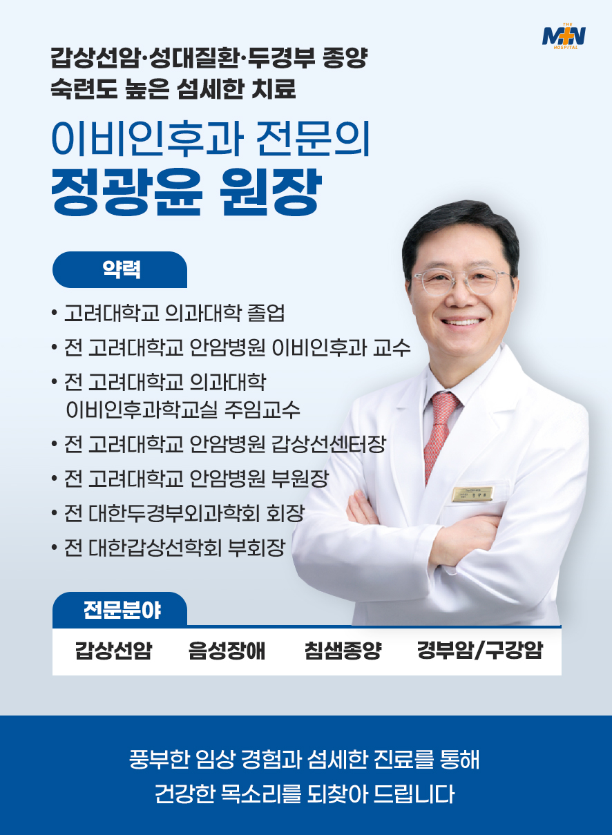 <명의칼럼 | 정광윤 원장> 일상에서 목소리가 쉬는 경험은 흔하다. 말을 많이 한 날, 감기 후 회복기처럼 원인이 분명한 경우에는 며칠 쉬면 좋아지기도 한다. 그러나 쉰 목소리가 반복되거나 2주 이상 지속된다면 단순한 피로로만 넘기기 어렵다. 이때 가장 먼저 확인해볼 질환 중 하나가 성대결절이다. 성대결절은 음성을 반복적으로 과사용하는 과정에서 성대 점막에 마찰과 압력(phonotrauma)이 누적되며 생기는 양성 병변이다. 특히 교사·강사·상담직군·가수처럼 ‘목소리를 직업적으로 쓰는 사람’에서 잘 발견되지만, 직업이 아니더라도 고함, 무리한 발성, 잦은 헛기침, 목에 힘이 들어간 발성 습관이 지속되면 발생할 수 있다. 문제는 여기서 끝나지 않는다. ‘쉰 목소리’라는 증상은 성대결절만의 전유물이 아니기 때문이다. 실제로 진료 현장에서는 성대결절로 의심하고 내원했지만, 검사 결과 역류 관련 후두염, 성대폴립·낭종 같은 다른 양성 병변, 드물게는 후두암 등 전혀 다른 질환이 발견되는 경우도 있다. 그래서 “성대결절 같으니 목을 쉬면 되겠지”처럼 자가 판단으로 시간을 보내는 것이 오히려 회복을 늦출 수 있다. 성대결절을 포함한 음성 질환에서 중요한 것은 ‘증상만 듣고 추정’하는 것이 아니라, 후두내시경(필요 시 스트로보스코피)으로 성대의 실제 상태를 확인하는 과정이다. 성대결절은 대개 양측 성대에 비교적 대칭적으로 관찰되는 경향이 있지만(개인차 존재), 병변의 위치·크기·점막 파동의 상태에 따라 치료 방향이 달라진다. 약물치료가 필요한 상황인지, 음성치료가 중심이 되어야 하는지, 혹은 수술적 치료가 고려되는지의 판단은 결국 시진(내시경) 기반 평가에서 시작된다. 여기서 많은 분들이 놓치는 포인트가 하나 더 있다. 성대결절 치료는 “혹을 없애는 것”만으로 끝나지 않는다는 점이다. 성대결절은 대개 발성 습관과 근긴장 패턴이 함께 얽혀 있기 때문에, 내시경으로 진단하고 의학적으로 위험 질환을 감별하는 역할(이비인후과 전문의)과, 실제로 음성 사용 습관을 교정하고 재발을 줄이는 역할(언어치료/음성치료)이 같은 목표를 향해 함께 가야 치료 만족도가 올라간다. 따라서 성대결절이 의심될 때 병원을 고르는 기준은 단순히 “가까운 곳”만이 아니라, 1. 이비인후과 전문의가 후두내시경으로 정확히 감별 진단을 할 수 있는지, 2. 진단 후 음성치료(언어치료)까지 연계가 가능한지, 3. 치료 중간에도 필요하면 내시경 재확인이 가능한지 이 세 가지를 함께 보는 것이 합리적이다. 민병원은 두경부 이비인후과 진료 시스템에서 정확한 진단(후두내시경 기반)과 재활적 접근(음성치료 연계)을 함께 설계하는 방향으로 치료를 진행한다. 쉰 목소리가 반복된다면 “그냥 쉬면 낫겠지”보다, 지금 성대가 어떤 상태인지부터 확인하는 것이 회복의 시작이 된다. 쉰 목소리는 흔한 증상이지만, 원인은 다양해 증상만으로 단정하기 어렵다. 특히 반복되거나 오래 지속되는 경우에는 후두내시경으로 성대 상태를 확인하고, 필요하면 음성치료까지 연결해 재발 요인을 함께 교정하는 접근이 도움이 된다. 마지막으로 쉰 목소리가 2주 이상 지속되는 경우, 목소리가 갈라지거나 고음이 잘 나오지 않는 증상이 반복되는 경우, 삼킴 불편·호흡 불편·목의 멍울·원인 모를 체중 감소가 동반되는 경우, 흡연력이 있거나 연령이 높을수록 진찰 받아보는걸 추천한다.